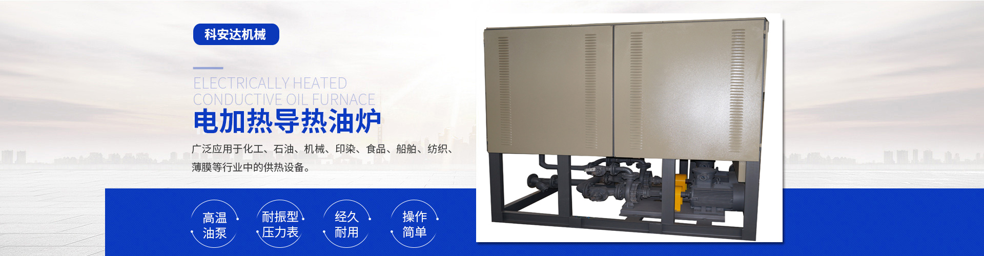 近年來(lái)我公司在延用自己的技術(shù)基礎(chǔ)上不斷引進(jìn)先進(jìn)技術(shù)與管理經(jīng)驗(yàn),專業(yè)研發(fā)制造電加熱導(dǎo)熱油爐(有機(jī)熱載體爐)、電磁感應(yīng)加熱器、電加熱爐、熱風(fēng)循環(huán)箱式預(yù)熱爐、風(fēng)道加熱器、空氣加熱罐、電加熱管、高溫電阻爐、保溫烘箱、烘道、鑄鋁鑄銅加熱器、防爆加熱器、遠(yuǎn)紅外加熱管、埋入式遠(yuǎn)紅外陶瓷加熱瓦、陶瓷加熱圈、不銹鋼云母電熱圈、碳化硅遠(yuǎn)紅外電加熱板、電熱帶 、真空清洗爐、三甘醇清洗爐等。產(chǎn)品適用于化纖、紡織、皮革、塑料機(jī)械、電纜機(jī)械、食品機(jī)械、橡膠機(jī)械、冶金、石油、化工、電子、醫(yī)療、海洋工程、家用電器等行業(yè)。同時(shí)可根據(jù)客戶使用與現(xiàn)場(chǎng)安裝的需要,設(shè)計(jì)、制造特殊規(guī)格的上述設(shè)備,企業(yè)以其先進(jìn)技術(shù)、合理的價(jià)格,周道的服務(wù)使產(chǎn)品遠(yuǎn)銷國(guó)內(nèi)外。